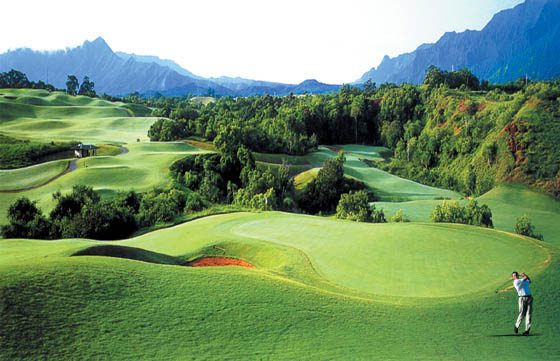 Scenic mountain golf course view